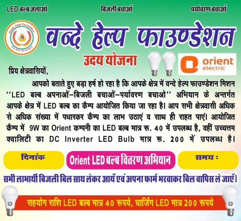 Vande Help foundation Uday Yojana LED Bulb Ran For All Rajasthan